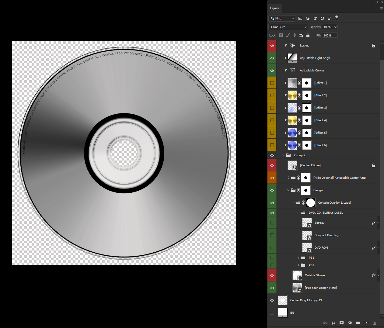 Console & Label Overlay: Add high-resolution overlays for PS2, PS1, GAMECUBE, or generic CD/DVD/BLURAY labels directly via organized layers (SVG/Vectorized Logos).